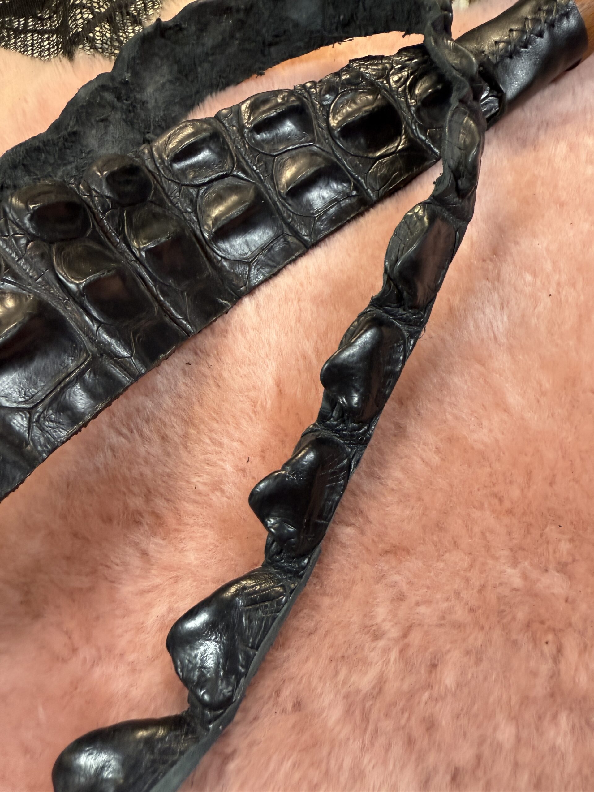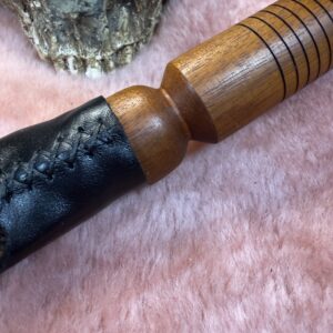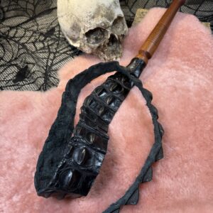 This Alligator Back Strap Dragon Tail is made from ethically and sustainably source Alligator. This has a reclaimed wood handle. This is an intense sensation and has a lot of after bite depending on how you land it.The backstrap scales are very interesting for sensation and sting. Each tail will vary slightly as will the handle.