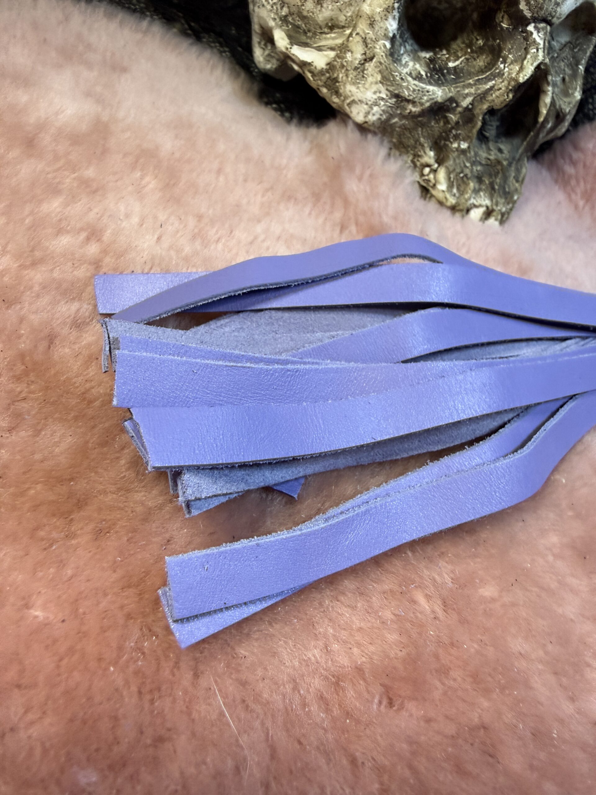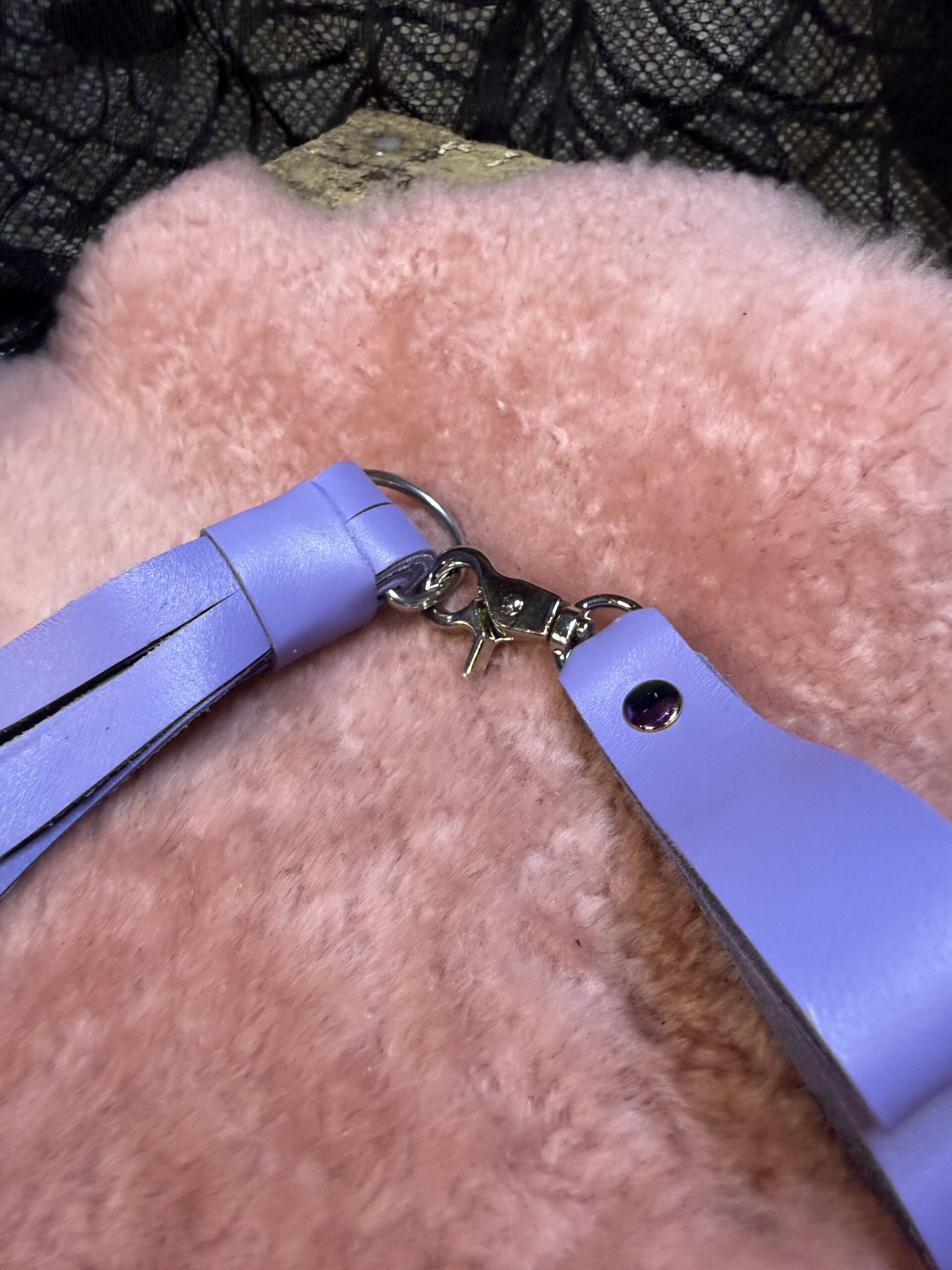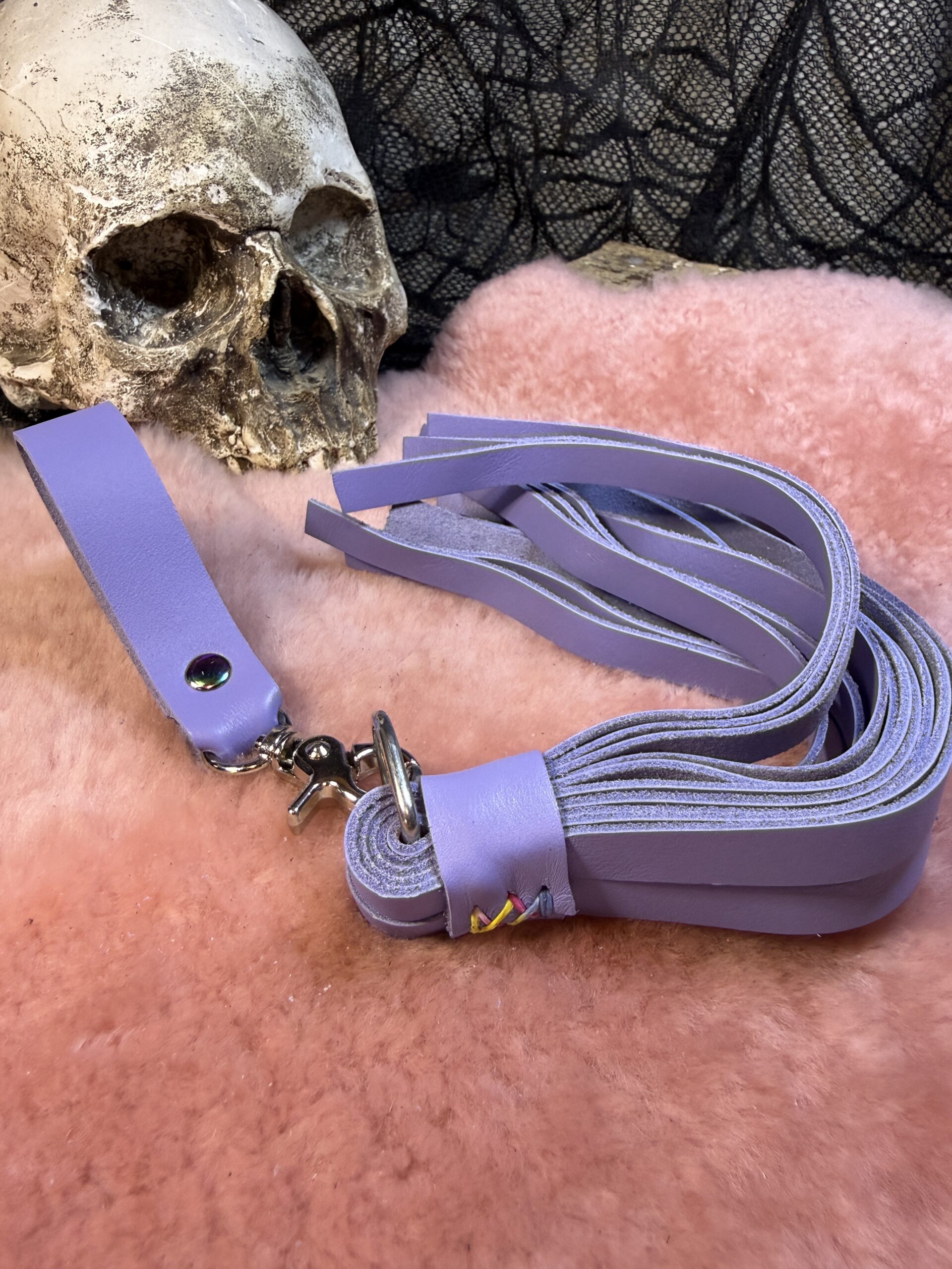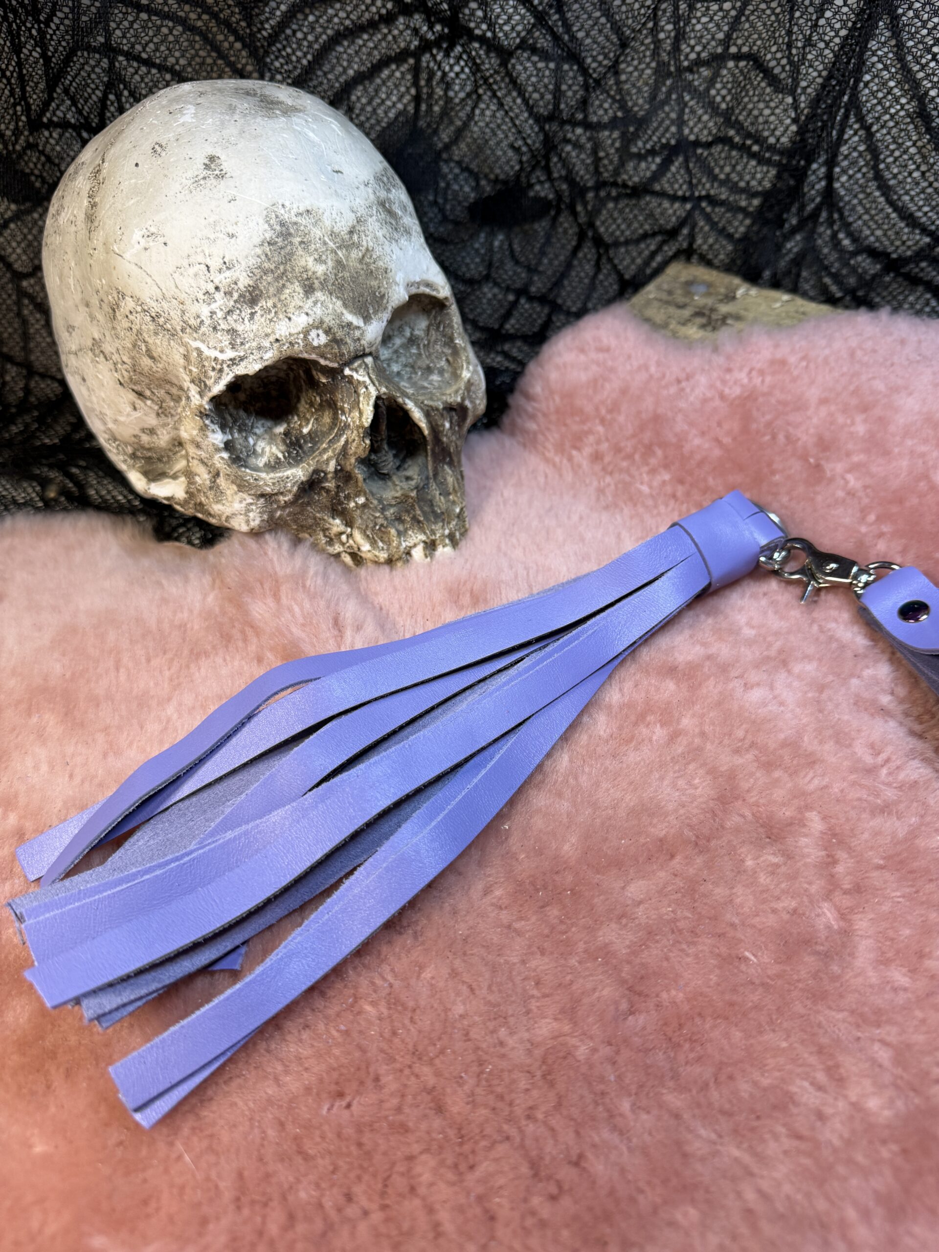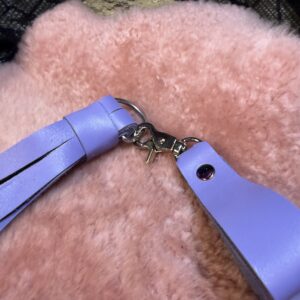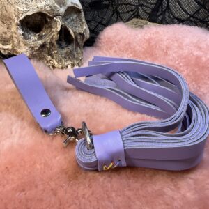 Introducing our gorgeous Lavender Bite leather Genital Flogger, a delightful addition to your playtime. This compact flogger is expertly crafted using leather, ensuring an unforgettable experience. Its matching finger loop handle offers a comfortable grip, allowing you to create a delightful rhythm and explore those intimate regions with pure pleasure.
