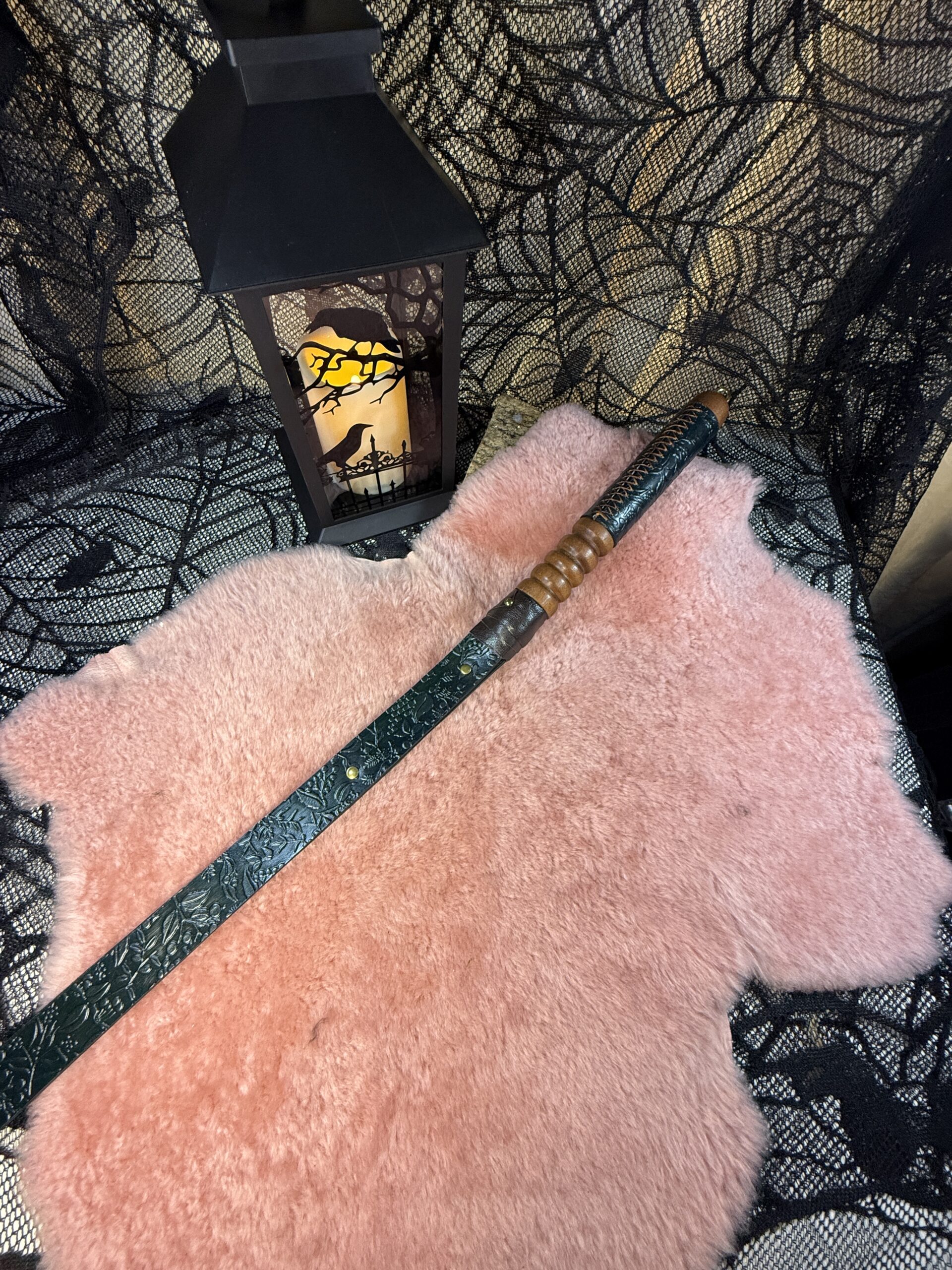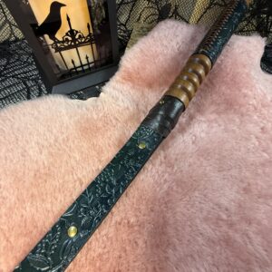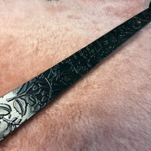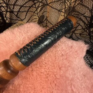 thick and stiff green foliage embossed leather with angled tips for a extra bite. This stiffer quirt is ideal for those who like a lot of sting! it packs a real stingy punch.