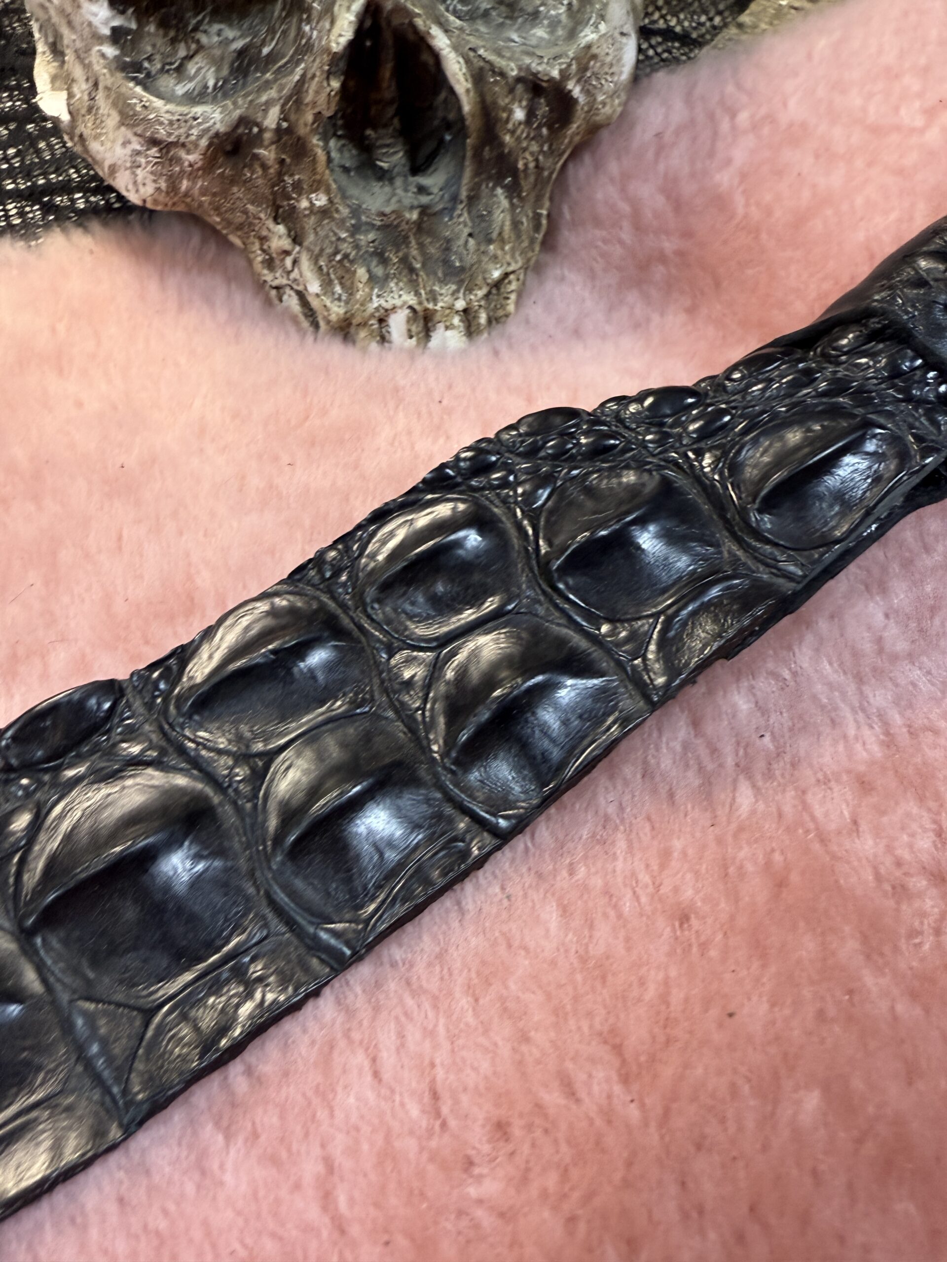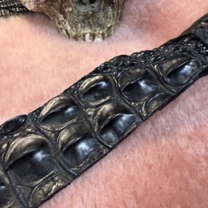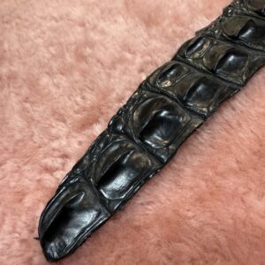 This Alligator Back Strap Dragon Tail is made from ethically and sustainably source Alligator. This has a reclaimed wood handle. This is an intense sensation and has a lot of after bite depending on how you land it.The backstrap scales are very interesting for sensation and sting. Each tail will vary slightly as will the handle.