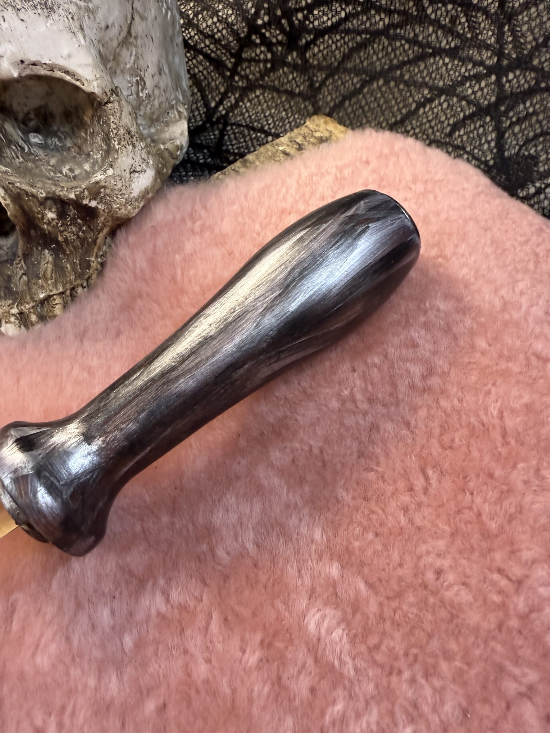This Silver Stinger rubber whippy features an 8mm flexible solid rubber opaque green whip seated in a silver and black handle with a decorative end.