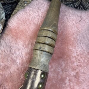 This flogger is finished with a chunky reclaimed wood handle. The handle grip measures 17cm overall.