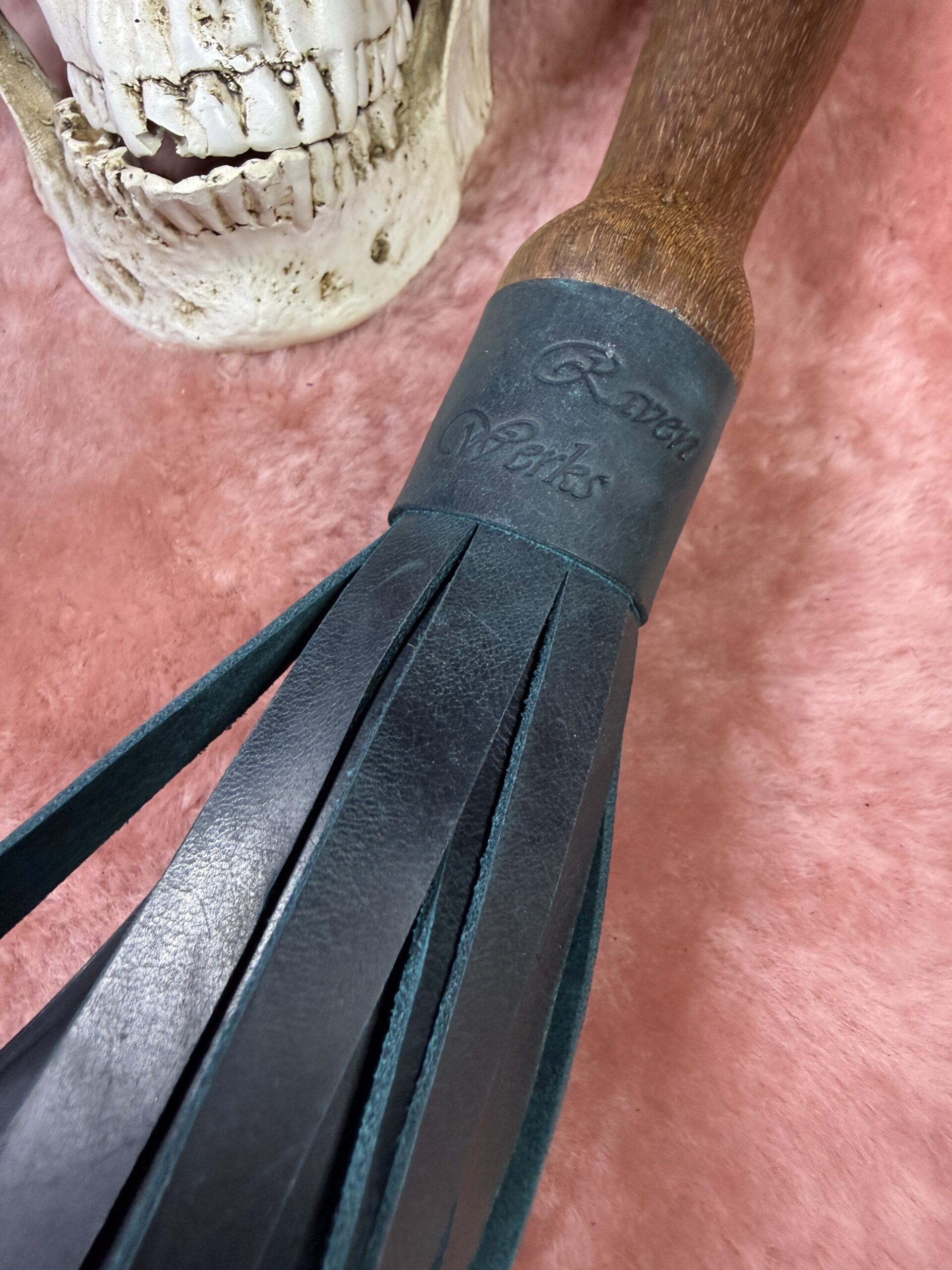 We strongly emphasize the importance of safe and consensual play. Always communicate with your partner and ensure you have a clear understanding of how to use the flogger. If you’re unsure, seek advice or refrain from engaging in play. Remember, their safety lies in your hands. While using this product, please note that Ravenwerks cannot be held liable for any injuries or accidents that may occur.