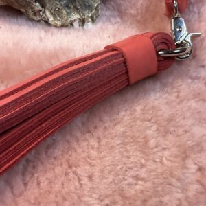 Introducing our Scarlet Command leather Genital Flogger, a delightful addition to your playtime. This compact flogger is expertly crafted using leather ensuring an unforgettable experience. Its matching leather finger loop handle offers a comfortable grip, allowing you to create a delightful rhythm and explore those intimate regions with pure pleasure.