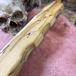 The Spalted Curvy Cleaver is made from a stunning Spalted hard wood sanded enough to be smooth but not to lose its character. All finished with an oil finish. With an overall length of 45cm and a target area of 33cm x 8.5cm x 3cm and a weight of 525g it will deliver a heavy and thuddy impact.