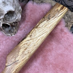 The Spalted Waste Whacker is made from waste offcuts sanded enough to be smooth but not to lose its character. All finished with an oil finish. With an overall length of 36cm and a target area of 25cm x 5cm x 3cm and a weight of 275g it will deliver a thuddy and deep impact.