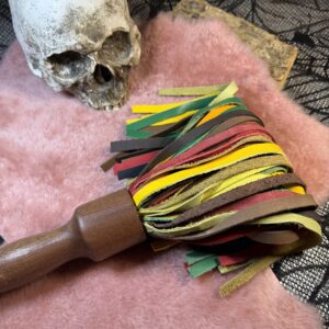 Our Wonkey Donkey floggers are made out of scrap falls, Wonkey cut falls, mismatches and anything else in the scrap box!! It’s perfectly imperfect!! This flogger features 75 1cm wide falls that are 30cm long . This flogger will give you a slightly stingy thuddy sensation. All seated in a reclaimed hardwood handle .