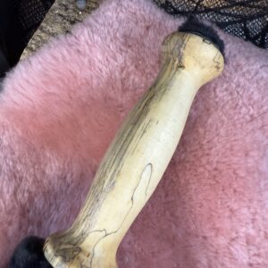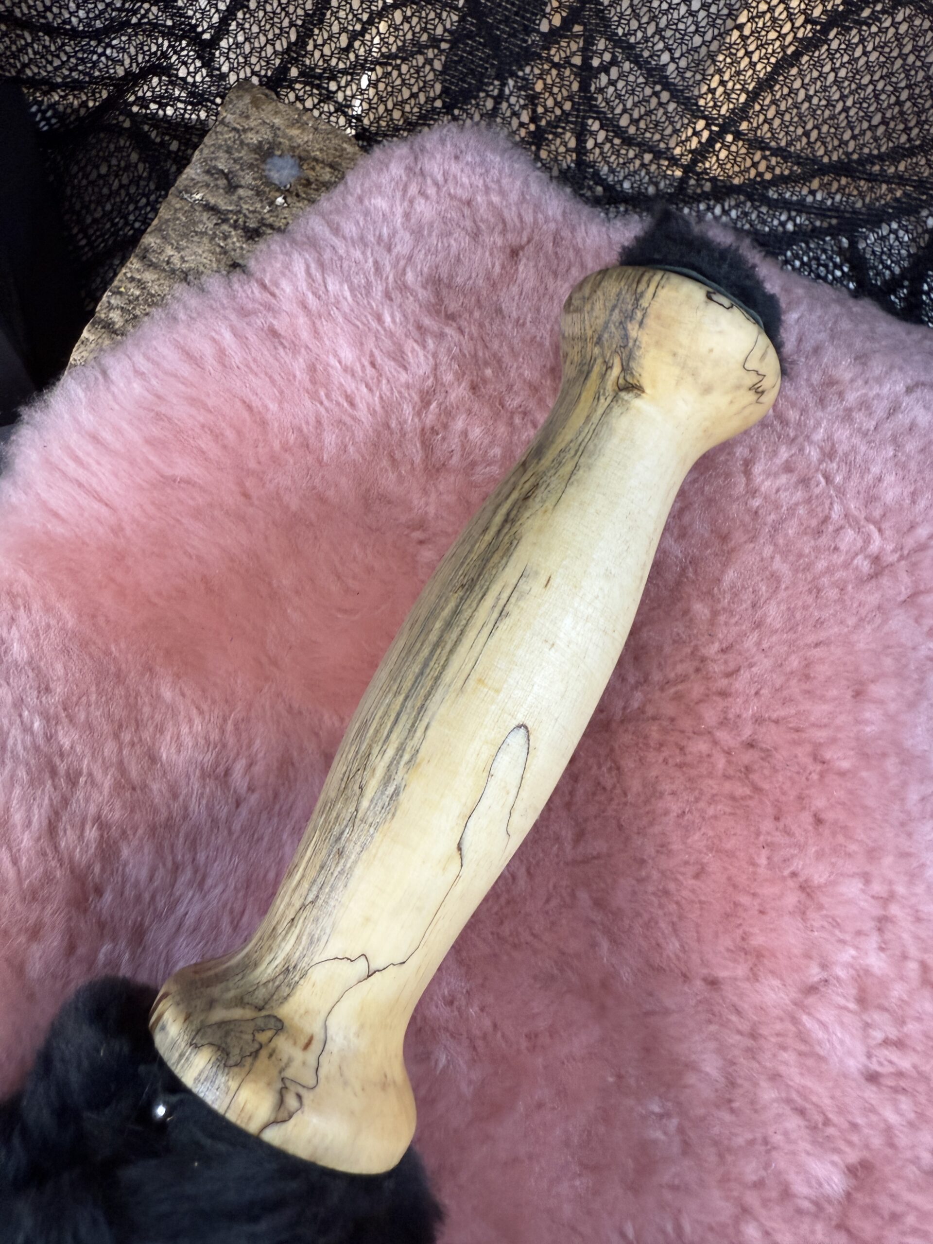 This flogger is finished with a hand-turned reclaimed spalted wood handle. The handle grip measures 16cm overall.